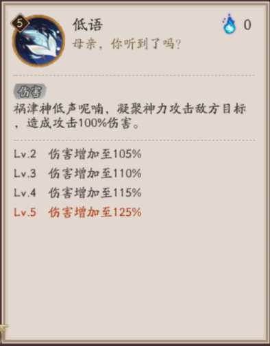 禍津神低聲呢喃,凝聚神力攻擊敵方目標(biāo),造成攻擊100%傷害。