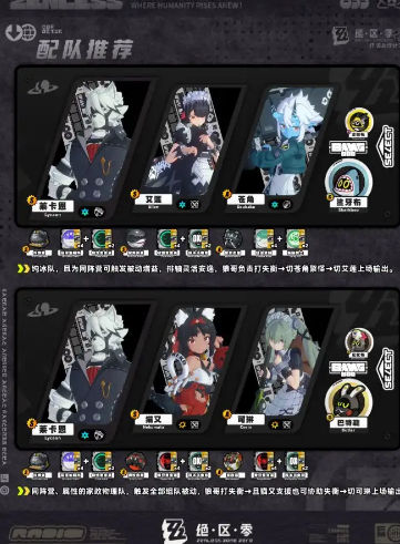 馮萊卡恩為主C,安比補(bǔ)充隊(duì)伍傷害,蒼角作為輔助角色提供額外支持。