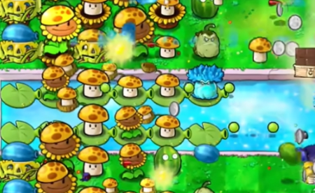 4、然后在左側(cè)種植多個(gè)寒冰大噴菇,在右側(cè)種植多個(gè)堅(jiān)果。