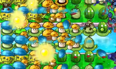 5、最后在左側(cè)補(bǔ)充兩列寒冰大噴菇,在右側(cè)補(bǔ)充多個(gè)西瓜堅(jiān)果和窩瓜堅(jiān)果即可。