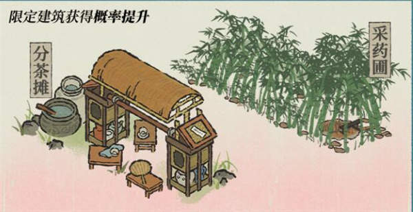 可消耗「金華火腿」兌換獲得桃花村限定建筑,本期建筑「分茶攤」及「采藥圃」刷新概率提升。
