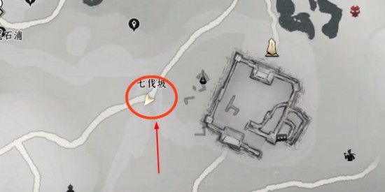 1.玩家打開地圖傳送到七伐坡附近,具體的位置如下圖所示。