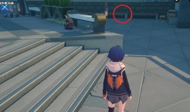 傳送到喵吉長官這,向左后方看,調查墻邊的長椅即可
