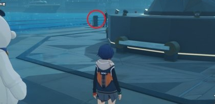 傳送到喵吉長官這,向右后方看,調查平臺邊緣的柱子即可