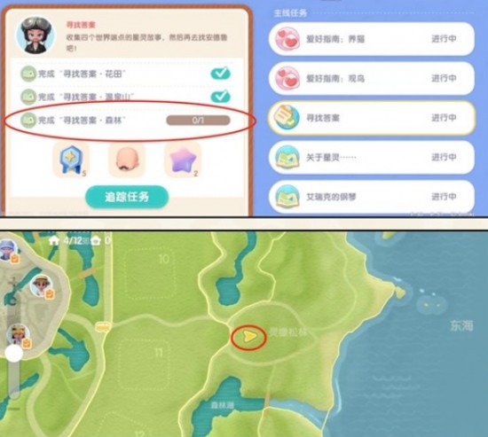 1、玩家要先接到主線任務(wù)【尋找答案】,完成“尋找答案·森林“,跟著任務(wù)指引來(lái)到地圖這個(gè)位置: