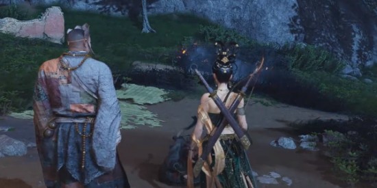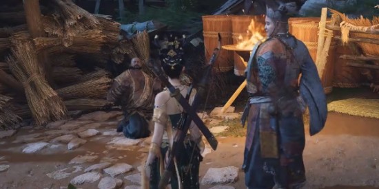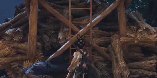 3.偷聽結束后我們進入營地將篝火旁的敵人清理掉,然后爬上梯子救下和尚;