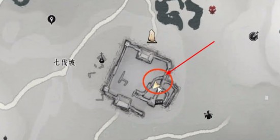 1.奇遇歸去來(lái)兮的觸發(fā)地點(diǎn)在七伐坡的北盟遺址中,詳細(xì)的位置如下圖所示。