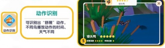 3、愛(ài)好等級(jí)能夠解鎖動(dòng)作識(shí)別,只要在鳥(niǎo)做出特定的動(dòng)作時(shí)候拍照,就可以識(shí)別出動(dòng)作,從而提高照片的星級(jí)。