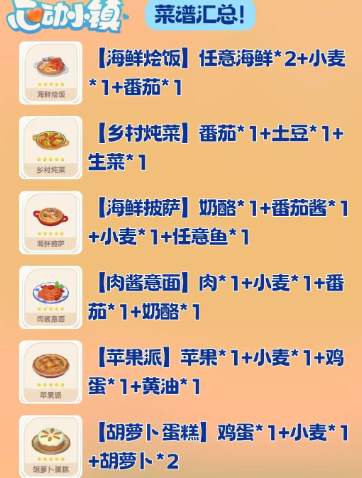 心動小鎮(zhèn)菜譜大全最新 心動小鎮(zhèn)菜譜大全最新合集2024