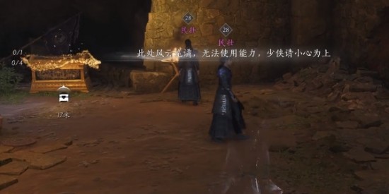 3.接著我們沿著木架的左側(cè)移動,將路上遇見的敵人全部清理掉然后跳下木架進(jìn)入密室,等到兩個(gè)npc交互時(shí)出現(xiàn)將其消滅,就可以拿到密室中的寶箱,開啟這個(gè)寶箱可以獲得心法-君臣藥。