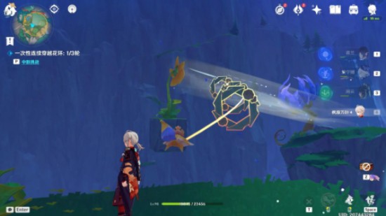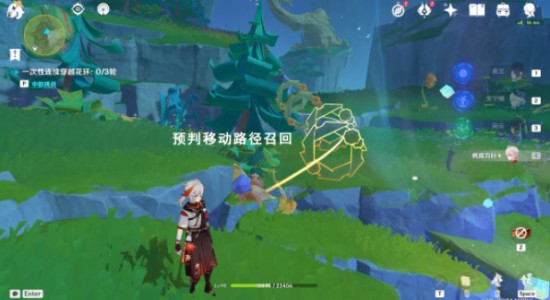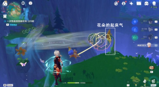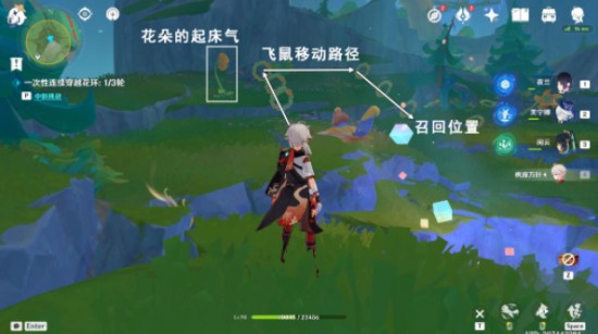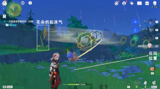長按攻擊,顯示軌跡穿過花朵的起床氣,之后長按攻擊,顯示軌跡穿過所有花環(huán),然后前往召回位置,顯示軌跡穿過所有花環(huán),點(diǎn)按攻擊召回。