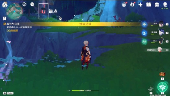 4、傳送賜福森林北方向錨點(diǎn),往地圖的北方向飛,開啟錨點(diǎn),再次和西梅公主一起挑戰(zhàn)試煉: