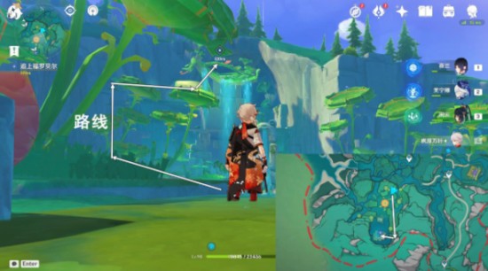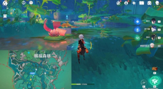 1、玩家先傳送賜福森林西南方向錨點(diǎn),往地圖的西南方向瀑布頂走,在這里就可以接取任務(wù);