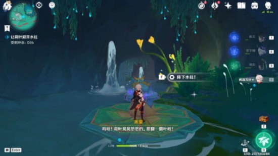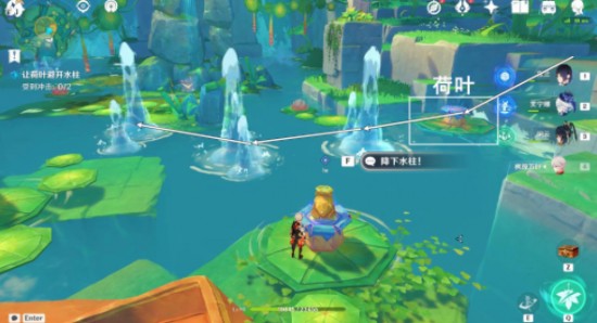 8、之后要讓荷葉避開水柱,玩家只要在荷葉漂過來(lái)前,交互“降下水柱!”即可;