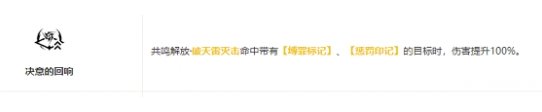 5、共鳴鏈決意的回響:對帶有縛罪標記、懲罰印記的目標造成傷害時,傷害提升100%。