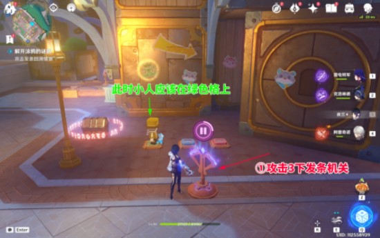 2、第一步:攻擊3下發(fā)條機(jī)關(guān),讓發(fā)條小人踩在“綠色格”上;