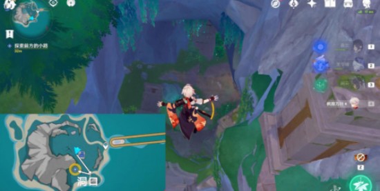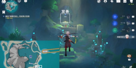 4.來到山洞中,往地圖的北方向走,交互石座“坐下”。