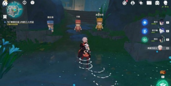 7.跟隨任務指引擊敗丘丘人與史萊姆,然后與積木小人對話。