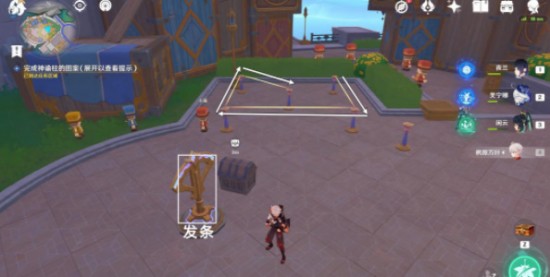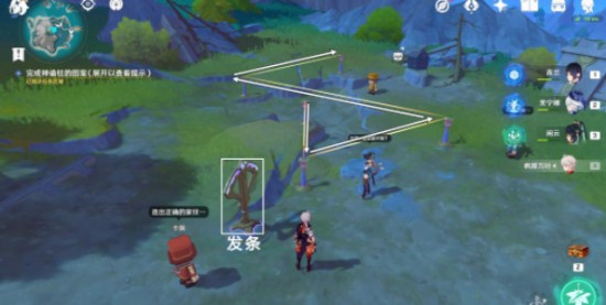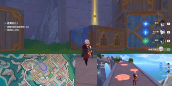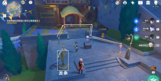 8.交互發(fā)條“操作”,交付“偉大發(fā)條”,擊發(fā)條至神諭柱上升至最高位置;按圖中指引方向連接,獲得精致的寶箱;