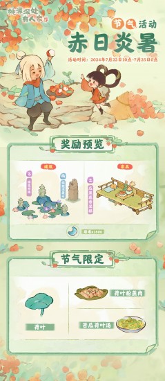 桃源深處有人家赤日炎暑怎么玩?備受期待的“桃源深處有人家”大暑節(jié)氣活動即將拉開序幕!在7月22日的游戲更新之后,玩家們就可以參與到充滿夏日熱情的“赤日炎暑”活動之中,盡情享受游戲帶來的樂趣。在此,小編特別為大家準備了詳細的活動介紹,其中包含了豐富的活動內(nèi)容和參與指南。對于感興趣的玩家們來說,這絕對是一場不容錯過的精彩盛宴,讓我們一起期待并準備迎接這場夏日的狂歡吧!