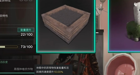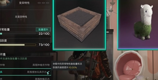 3、這個乖乖兔的收容環(huán)境是需要放在農(nóng)作物的旁邊,然后旁邊還要有下圖這個玩具和花卉這樣才能快速回復(fù)能量。