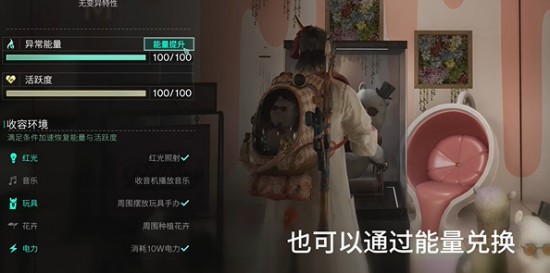 4、這個(gè)收容物的技能都是需要能量足夠才能使用的,可以放置紅光、音樂(lè)、玩具、花卉、電力等來(lái)回復(fù)能量。
