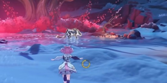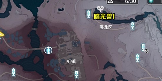 玩家首先傳送到臥龍岡左上角的傳送信標(biāo),然后往小地圖的右側(cè)移動(dòng),在河流中可以發(fā)現(xiàn)到一只踏光獸。(小編這里是還沒有刷新出來)