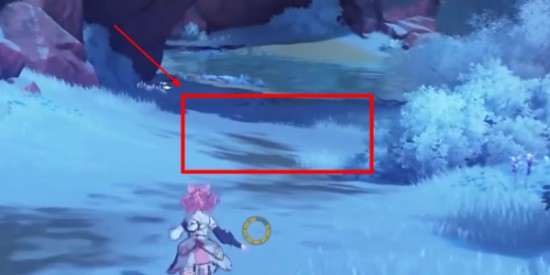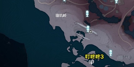 傳送到隙光灘右下角的小型信標(biāo),離開信標(biāo)后往小地圖西方向移動(dòng),爬上山壁后來到上一層繼續(xù)往左側(cè)移動(dòng),然后在一處水潭旁有概率刷新出叮咚咚。