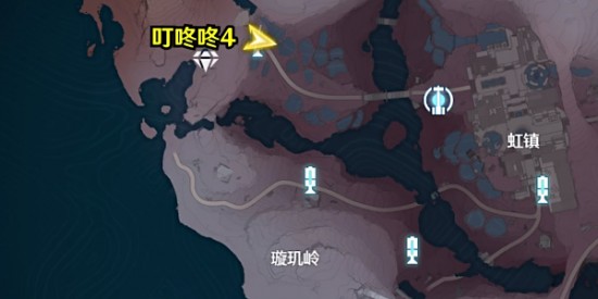 1.1版本新增的閃光異相聲骸叮咚咚有四處刷新點(diǎn)位,分別位于盤龍崖、天取木、璇璣嶺右下方的海灘、隙光灘右下角;分別位置分別如下圖所示。