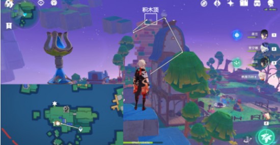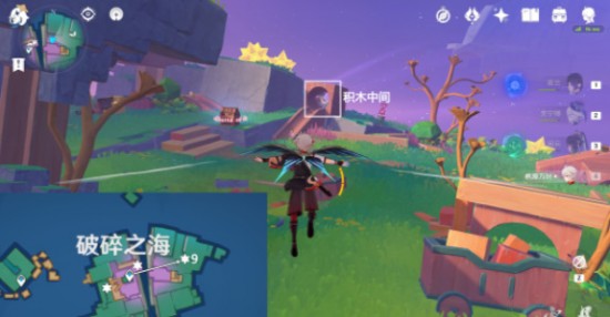 傳送破碎之海南方向錨點(diǎn),按圖中指引路線飛,爬至積木頂拾取歡聲飛羽。