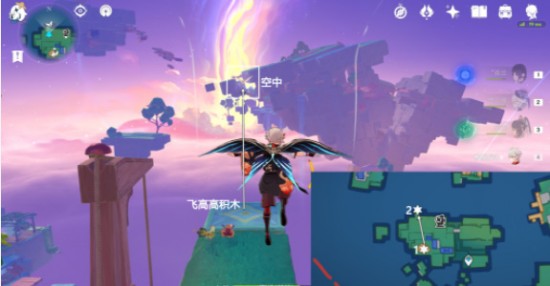 往地圖的西北方向飛,利用“飛高高積木”,飛至空中拾取。
