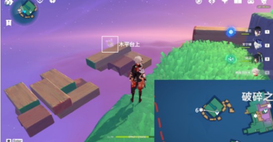 傳送破碎之海西方向錨點(diǎn),往地圖的西方向走,在木平臺(tái)上拾取。