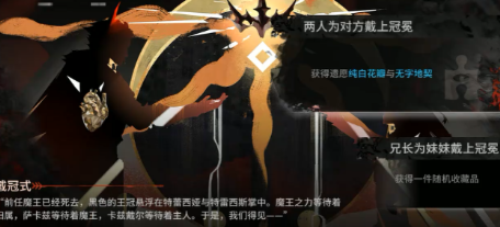 2、在第二層的時候選擇兩人為對方帶上冠冕,之后玩家們就可以拿到純白花瓣還有無字地契兩樣東西。