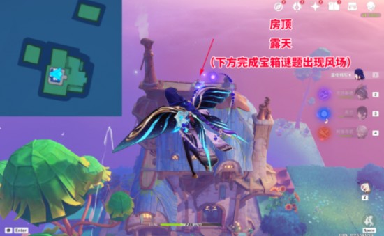 【點位5】房頂(下方完成寶箱謎題出現(xiàn)風(fēng)場),露天,直接獲得。