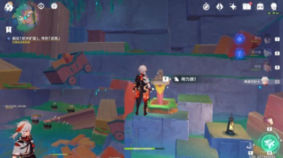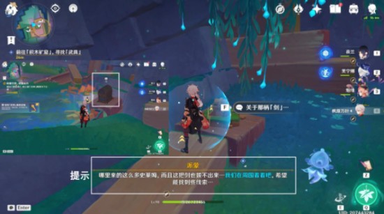 12、等出現(xiàn)派蒙提示后,往地圖的北方向走,交互洞窟內(nèi)機(jī)關(guān)“關(guān)于那柄「劍」···”,獲得華麗的寶箱;