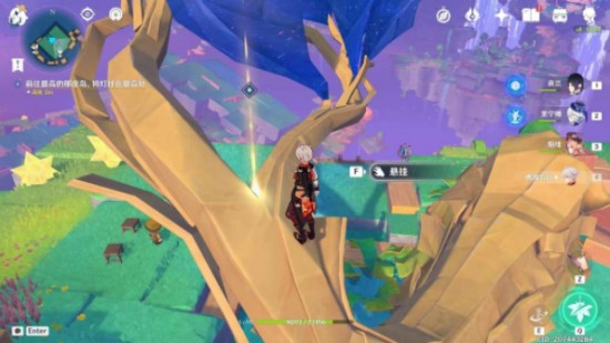 8、然后沿樹干爬到樹頂,交互“懸掛”的按鈕;