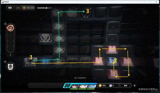 2、到1區(qū)域后,按R鍵進(jìn)入【夜視模式】(夜視模式可以看見路線,可以打紅色和藍(lán)色的怪,可以穿墻,所以攻略一些地方我會(huì)用夜視模式給大家看路線,大家只需要在打紅色和藍(lán)色怪的時(shí)候進(jìn)入夜視模式即可,正常走需要退出夜視模式),然后去2區(qū)域,先將2區(qū)域四周4個(gè)紅色怪打了,再進(jìn)入2區(qū)域,然后在2區(qū)域按R鍵退出【夜視模式】后,即可自動(dòng)返回到1區(qū)域,接著去上面3區(qū)域;