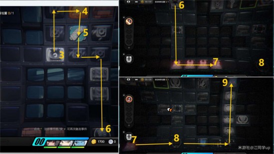 3、接著去4和5區(qū)域,然后去下面6區(qū)域,在6區(qū)域按R鍵進(jìn)入【夜視模式】,去打了下面4個(gè)紅色怪后,在7區(qū)域按R鍵退出【夜視模式】后,即可自動(dòng)返回到6區(qū)域,然后去下面8區(qū)域,接著在8區(qū)域按R鍵進(jìn)入【夜視模式】去打了9區(qū)域藍(lán)色怪后再退出【夜視模式】,然后去9區(qū)域;