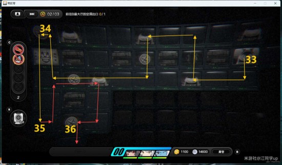 10、接著先走黃色路線33-34-35,再走紅色路線35-36,這樣走怪就追不上我們了;