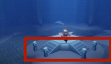 2、進入禁閣后,一直往里面飛,會看到一個臺子,點燃周圍的石燈,進入光圈,點擊坐下,來到二樓。