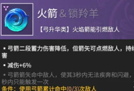 2、弓箭箭矢命中敵人后,敵人在3秒內(nèi)無(wú)法疾奔和閃避,間接提升箭矢的命中率。