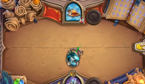 2、此時(shí)場(chǎng)上全部為2-3血怪,用魚斯拉打最左或者最右解掉全場(chǎng)隨從,最后使用熔巖爆裂解掉魚斯拉。