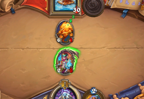 1、先使用1/3精明的奧術(shù)師,再用瘋狂的煉金師對(duì)敵方隨從血怒者科爾拉克使用讓其變?yōu)?/3。