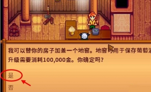 4、點(diǎn)擊“是”扣除金錢,然后從第二天木匠就會(huì)去農(nóng)場蓋酒窖了。