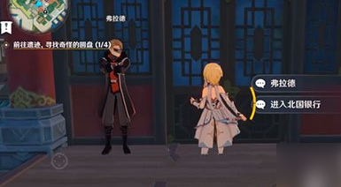 這個北國銀行就是在璃月這里,然后玩家可以在小地圖上看到一個鉆石一樣的圖標,這個就是北國銀行了,需要玩家來到上層,這個路比較繞,玩家仔細觀察就可以找到了,然后在這里可以看到一個守衛(wèi)旁邊有個門,此時就可以直接進入這個門,進入內(nèi)部了。