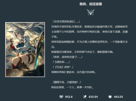 生命值:953 攻擊力:635 防御力:463