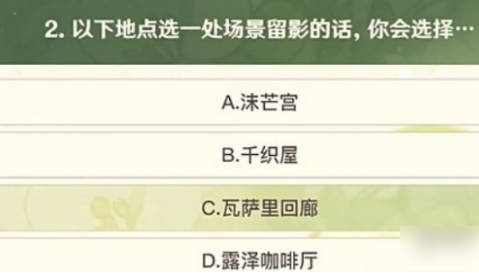 2、問題:以下地點(diǎn)選一處場景留影的話,你會選擇...