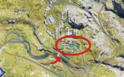 2、來(lái)到箭頭所指的建筑,在室外水池中能夠找到一個(gè)武器箱。
