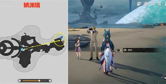 2、接著選擇選項“鱗淵境”,前往鱗淵境找到了這2個人,選擇旁聽即可獲得成就。