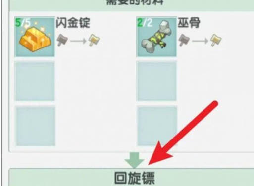4、消耗5個閃金錠和2個巫骨,制作出回旋鏢。